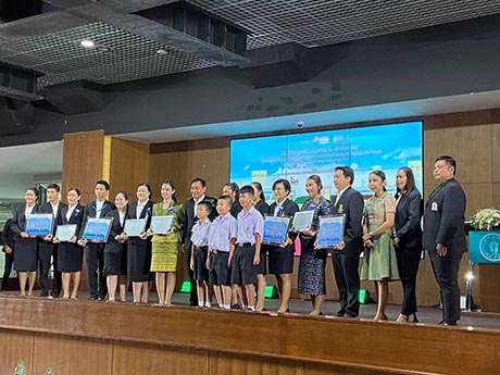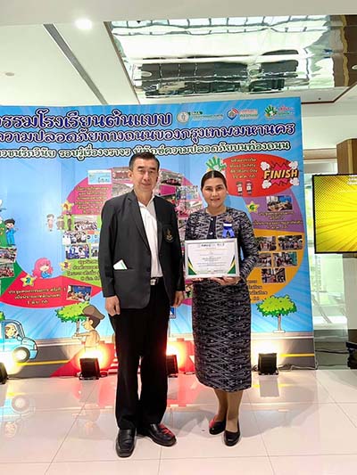 คุณครูญานิน สารพงษ์ คุณครูธีรนาฏ บุญทิพย์ภานนท์ เข้ารับรางวัล ‘‘ดีเด่น’’ กิจกรรมโรงเรียนต้นแบบด้านความปลอดภัยทางถนนของกรุงเทพมหานคร
